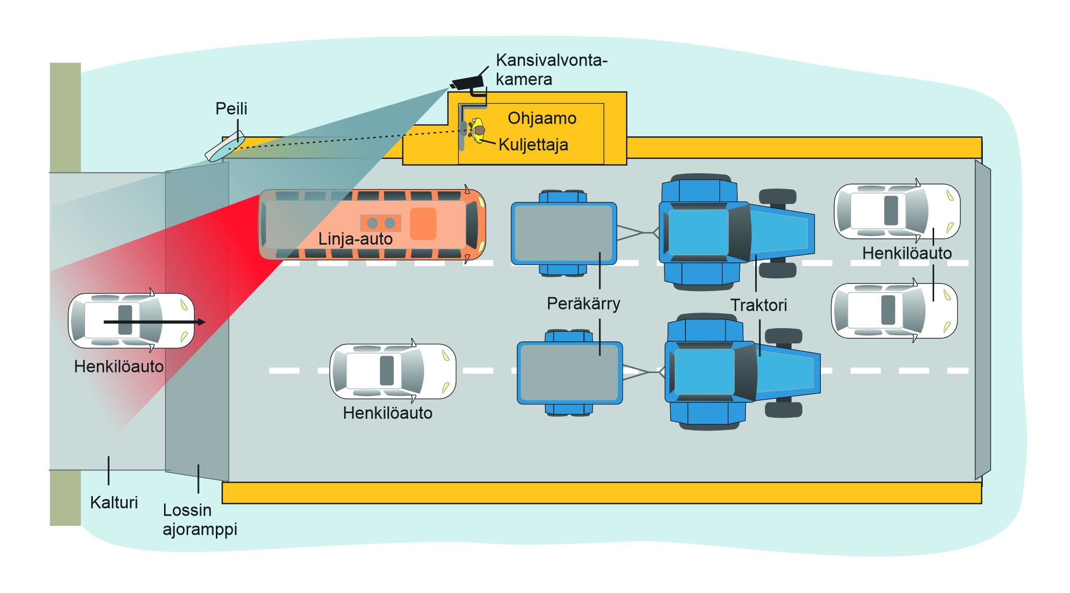 Lossin kuljettaja ei välttämättä kykene havaitsemaan, että rampilla on autoja tai matkustajia ilman, että hän käy varmistamassa tilanteen.