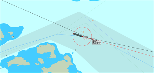 Viking Grace ja Skiftet kohtaavat samalla väyläosuudella päivittäin alusten aikatauluista johtuen. VTS seuraa aluksia ja varoittaa mm. vastaantulevasta liikenteestä. Väylä tekee jyrkän mutkan Enskärin pohjoispuolella, mutta Enskär ei rajoita näkyvyyttä. Väyläalueen varmistettu syvyysalue on melko leveä kohtaamispaikassa, joten se ei rajoita väistöliikkeitä.
